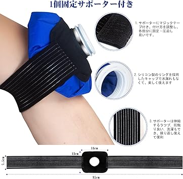 ・【5-in-1デザイン】:アイシング×2(●Sサイズ:直径約15cm/6インチ)、固定サポーター×1(●104cm×8.5cm)。子供と10代の場合は小6インチ、中9インチ、大人の場合は大11インチ。アイシングサポーターは伸縮可能なツインストラップで、締め付け強度を調整できます。