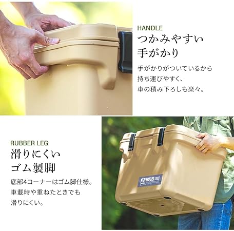 ・※飲料水や食品の保存容器としてご使用ください。 / ※フタには重いものを置いたり、座ったりしないでください。 / ※強い衝撃を与えると破損することがあります。 / ※ドライアイスは使用しないでください。 / ※薬剤、溶剤等の液体は入れないでください。 / ※水や海水の運搬には使用しないでください。 / ※火の近くには置かないでください。 / ※フタの開閉を頻繁に行った場合、直射日光が当たる場所に置いた場合、高温多湿な場所に置いた場合は保冷力が落ちます。 / ※フタのパッキンは通気を防ぐ簡易的なものであり、密閉するものではありません。 / ※汚れを落とす場合は、薄めた中性洗剤を使用して拭き取るようにしてください。 / ※保冷専用であり、熱いものを入れると保冷効果が下がる恐れがあります。