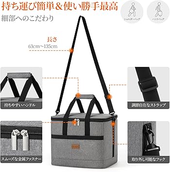 ・保温性抜群: 外側には破れにくいオックスフォード生地を使用して防水コーティングを施し、内側には厚手の樹脂素材を使用しています。5mmの断熱フォーム層を内蔵しているため、さらに保冷・保温性が高くなっており、食べ物を冷たく、温かく、新鮮に6時間保ちます。また、アイスパックと併用すれば、8〜24時間食品を保冷することができます。