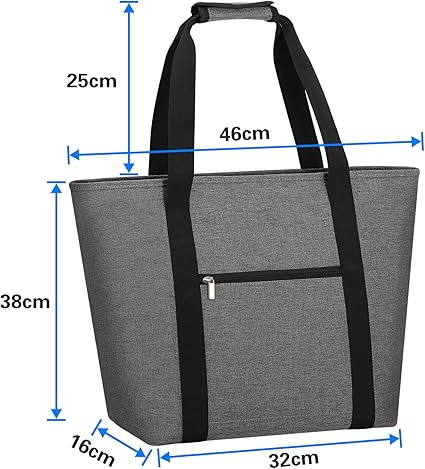 ・【製品スペック】トートバッグサイズ:上辺46cm * 下辺32cm * 高さ38cm * マチ16cm / 持ち手の高さ:25cm / 対象:男女兼用 / カラー:ブラック、グレー。エコバッグ、買い物バッグ 、保冷バッグ 、ランチバッグ として使用できます。
