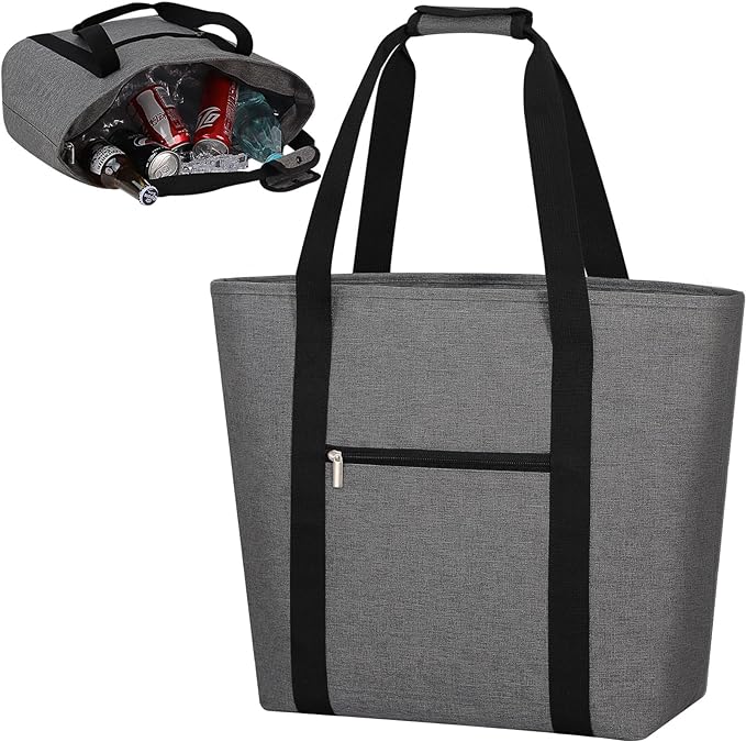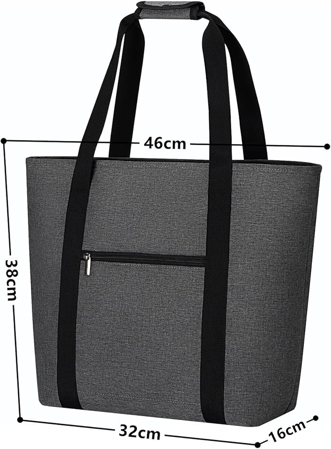 ・【大容量クーラーバッグ】トートバッグのサイズは 上部46cm x 下部32cm x 高さ38cm x 奥行き16cm、持ち手の高さは25cmで、大容量です。お買い物や収納のニーズに十分対応できます。アウトドア、ショッピング、買い物の時に大活躍。食料、ペットボトル、ビール、ワイン、冷凍食品や野菜などをまとめて持ち運べます。キャンプはもちろん、ビーチ、プール、釣りなど、濡れたものを入れたい時など用途は様々です。