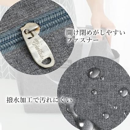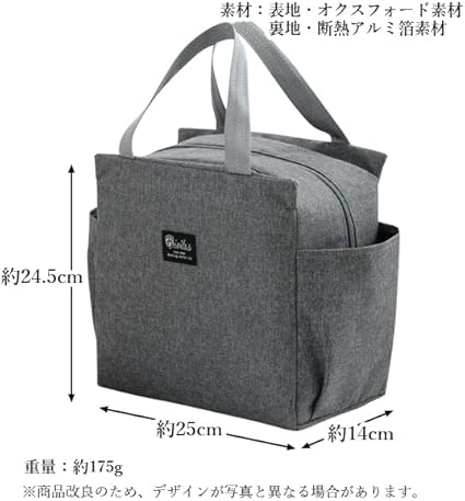・大容量でシンプルなデザインのランチバックです。 ・保冷保温どちらも兼ね備えているので、オールシーズン使用できます。 ・サイドポケット付きで水筒や折りたたみ傘などを入れることができます。 ・撥水加工がされています。 ・開け閉めがしやすいファスナーになっています。 【商品仕様】 カラー グレー