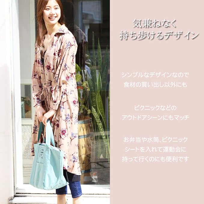 ・大容量収納で実用性は高く、 日々のお買い物や休日のレジャーに大活躍なバッグです。 裏にはアルミシートを使用して中身を守ります。 肩にかけやすく、お買い物などにも便利です。