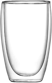 ダブルウォール グラス 二重構造 100%鉛フリー 耐熱 カップ 保温 保冷 タンブラー 電子レンジ対応 (450ml,1個セット)