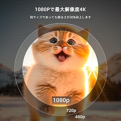 ・【?寿命・おしゃれな外観・3年品質サポート】 内外ともに優れています!1年に及ぶ厳選された素材、デザイン、そして数多くの品質テストを経った高品質な材料が製品の耐久性を持って、使用中に損傷が少なくなります。 独特の垂直ストライプ模様があり、手触りも快適です。ローズゴールドのレンズリングは製品の優雅さを引き立てます。 家庭のインテリアの一部だけでなく、誕生日、記念日などの特別な休日に、子供や家族や親友、または自分に、素晴らしい選択肢です。さらに、プロジェクター本体には充実した機能キーも用意されており、リモコンを見つけられなくても心配ありません。家族と一緒にホームシアターで異なる体験を楽しむなら、L02を選んでください。弊社はお客様に100%の品質と体験を提供することを約束し、36か月の条件なし交換/返品サービスと技術サポートを提供します。故障の場合は専門チームがサポートさせていただきます。【今からご注文いただくと、100インチのスクリーンまたは専用三脚をもらうチャンスがあります。詳細について[email protected]までご連絡ください】