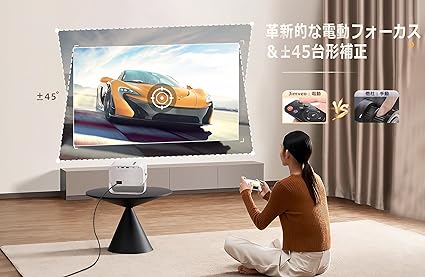 ・【±45°自動台形補正&電動フォーカス】従来のプロジェクターは、位置を変えるたびに本体のダイヤルで画面の歪みを手動で調整しなければなりませんでした。しかし、このAY2Pro家庭用プロジェクターは、±45°の自動台形補正機能を備えており、製品を動かしても画像の歪みを自動で修正することができます。手間が省けるだけでなく、より正確な映像を提供します。プロジェクターの設置場所が自由に選べるため、家具の配置や視界が邪魔になることなく、スクリーンの正面に置くことができます。さらに、従来のプロジェクターは手動で本体のダイヤルでピントを調整しなければなりませんでしたが、このAY2Pro家庭用プロジェクターは電動フォーカス機能を備えており、リモコンで簡単に画像の鮮明度を調整できます。ソファーやベッドでゆっくりと、迫力あふれる臨場感のある映像を楽しむことができ、素晴らしい映画鑑賞体験を提供してくれます。ご自宅をホームシアターに変え、無限の楽しみを味わうことができます!