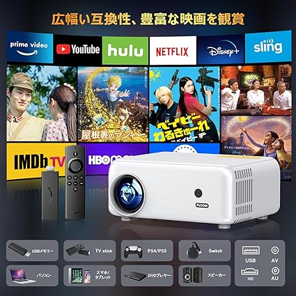・【高輝度14000LM・1080P高解像度・4K対応】PR02プロジェクターは1920*1080P解像度を搭載し、動画の高級な質感を投射します。 輝度は14000ルーメンにアップデートし、 コントラスト比12000:1、明暗細部と鮮やかな色彩で、動画の自然な色を高画質に映し出し、臨場感を感じさせ、まるでホームシェアターのような雰囲気です! 更に、PR02小型プロジェクターは4Kに対応、遅延なくて美しくスムーズな4K超クリア画面もリアルに再現。このプロジェクターはHDMI*1 /USB*1 /AV*1 /Audio*1の必要十分な入力ポートを揃っています。PC、PS4/ PS5、TV Stick、DVD、スピーカー、USBメモリ、Xbox、TV box、3.5mmオーディオなどのメディアデバイスに対応します。