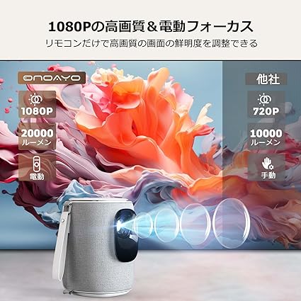 【2024革新静音プロジェクター】ONOAYO プロジェクター 家庭用 20000LM高輝度 電動フォーカス 自動台形補正 1080P 小型