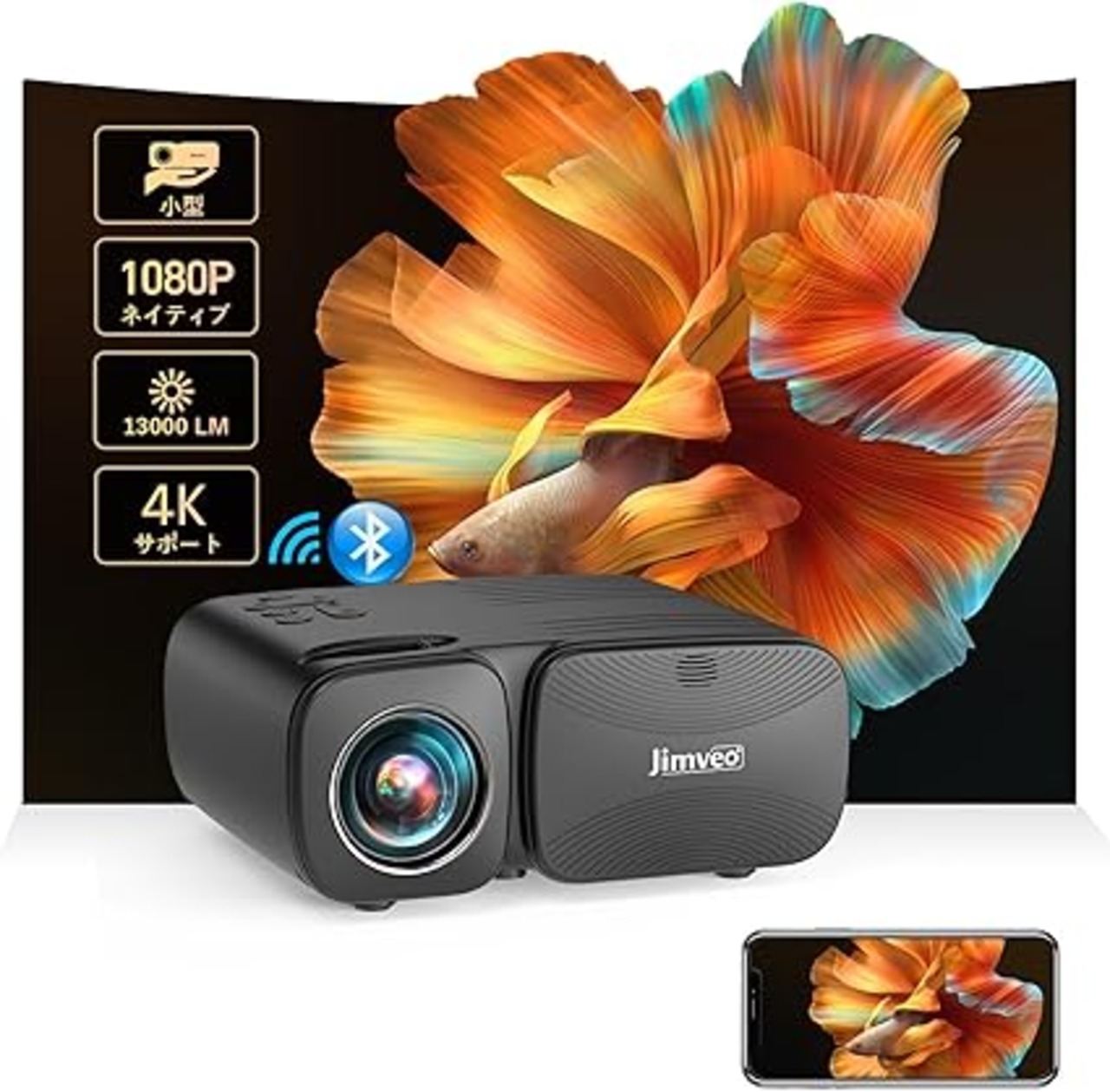 Jimveo プロジェクター 超小型 13000lm 1080PフルHD Bluetooth5.2搭載 5GWiFi 家庭用短距離投影ホーム
