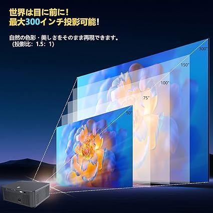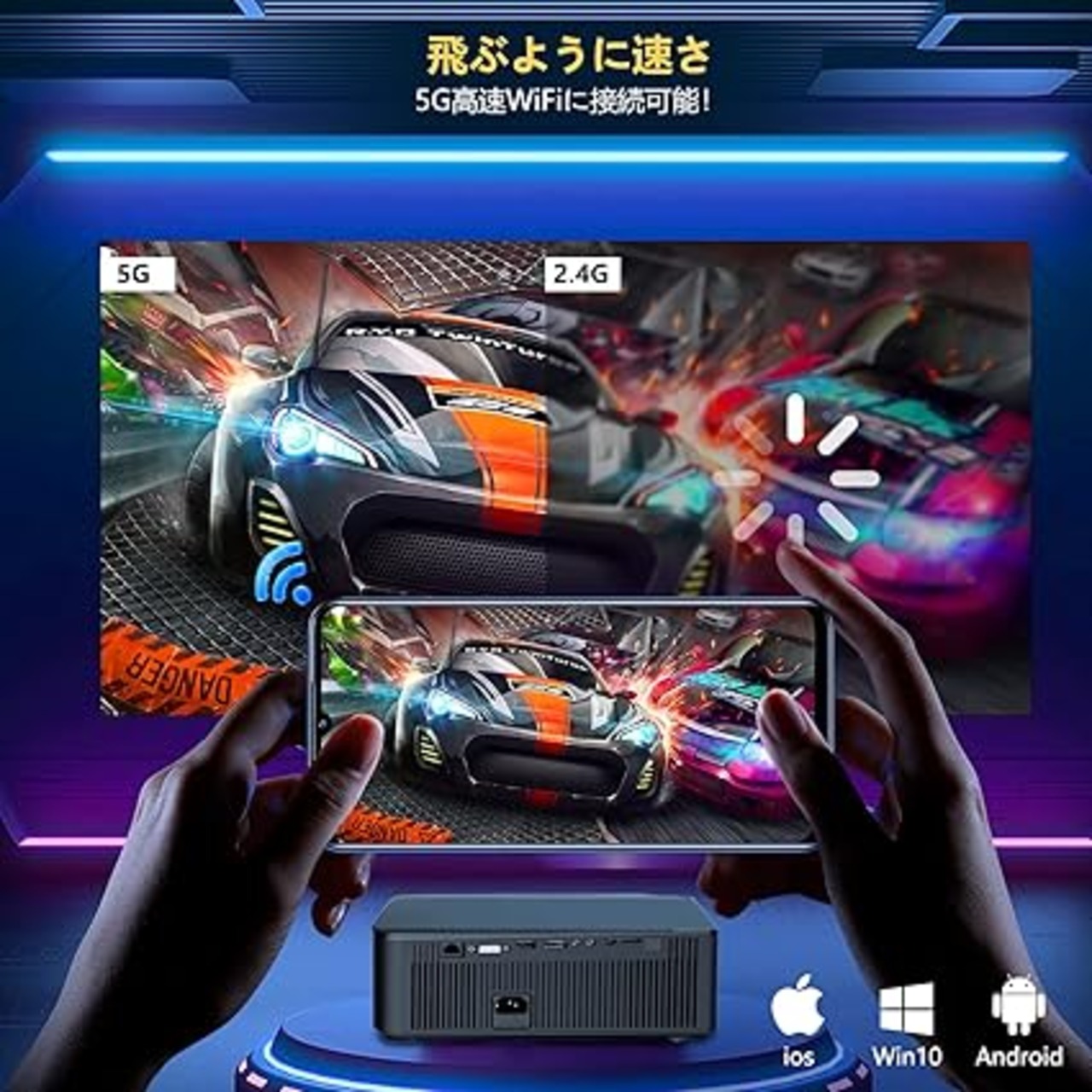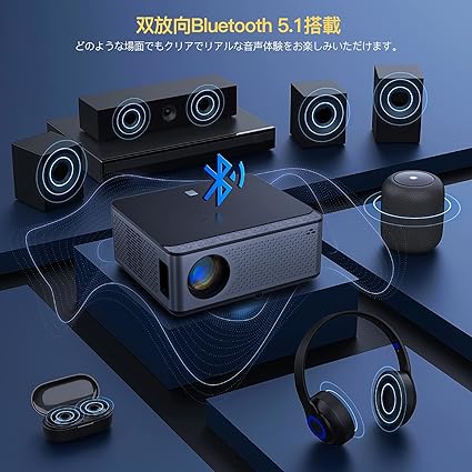 ・【快適な映像・音声を楽しもう!】2.4GHz WiFiだけでなく、5GHz WiFi認識することができます。ご利用されるネットワーク範囲が広くなり、超すばらしい体験を提供し、映画、ゲーム、プレゼン用に低遅延で楽しむことができます。双方向bluetooth 5.1機能を搭載し、原音を再現した。高音質10Wスピーカーを搭載し、臨場感あふれる立体サウンドで圧倒的な没入感を味わえます。ノイズキャンセリング技術と放熱システムを搭載することで、通常のプロジェクターよりも静粛な30db以下の動作音を実現しています。