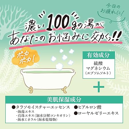 ・【お肌に嬉しい成分をたっぷり配合】有効成分エプソムソルト(硫酸マグネシウム)や、タラソモイスチャーエッセンス、ヒアルロン酸といった美肌保湿成分を配合し、にきびや湿疹などの気になる肌荒れを緩和します。