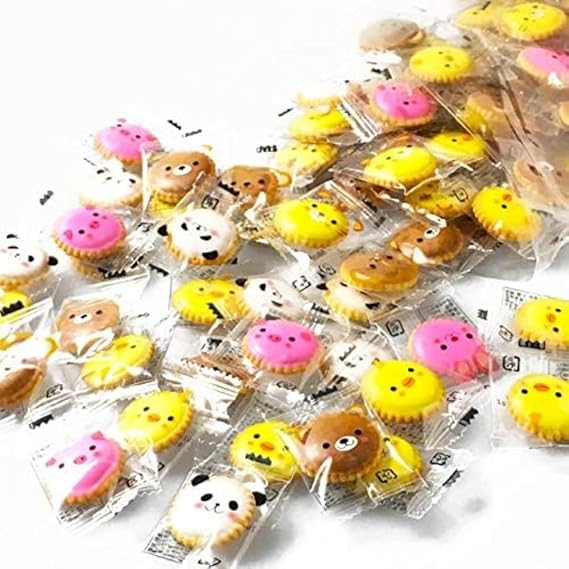・原材料:【白】小麦粉(アメリカ合衆国産)、砂糖、植物油脂、ショートニング、砂糖混合ぶどう糖果糖液糖モルトエキス、食塩、澱粉、ぶどう糖、ゼラチン、膨張剤、香料【茶】小麦粉(アメリカ合衆国産)、砂糖、植物油脂、ショートニング、砂糖混合ぶどう糖果糖液糖モルトエキス、食塩、澱粉、ぶどう糖、ゼラチン、膨張剤、着色料(カラメル色素)、香料【ピンク】小麦粉(アメリカ合衆国産)、砂糖、植物油脂、ショートニング、砂糖混合ぶどう糖果糖液糖モルトエキス、食塩、澱粉、ぶどう糖、ゼラチン、膨張剤、着色料(赤3)、香料【黄】小麦粉(アメリカ合衆国産)、砂糖、植物油脂、ショートニング、砂糖混合ぶどう糖果糖液糖モルトエキス、食塩、澱粉、ぶどう糖、ゼラチン、膨張剤、着色料(黄4)、香料