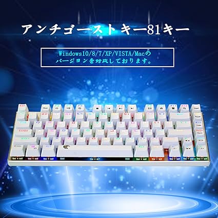 e元素ゲーミングキーボード 赤軸81キーアンチゴーストキー メカニカル式ゲーム用キーボード RGB発光LEDバックライト付き USB有線高速