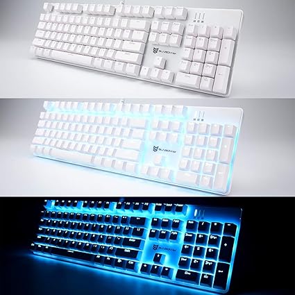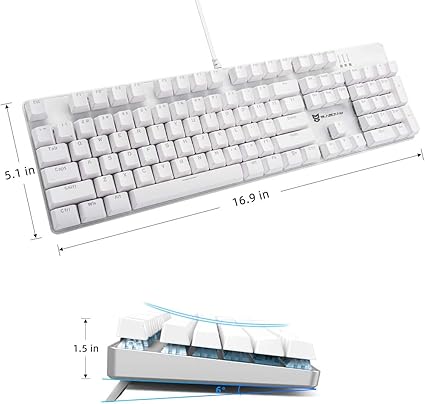 Merdia メカニカル式ゲーミングキーボード 全104キーボード US配列 USB有線キーボード LEDバックライト付き (茶軸-ホワイト