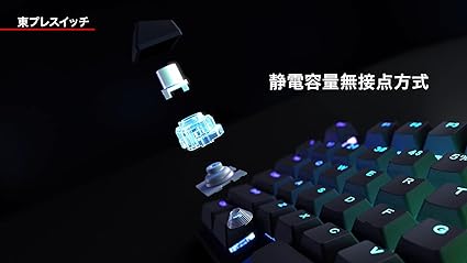 ・【1億回以上の打鍵耐久性】 東プレで製造している静電容量無接点方式スイッチは、電極部分に接点を持たない構造となっており、チャタリングレスで1億回以上の高い打鍵耐久性を誇ります。