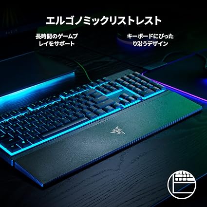 Razer レイザー Ornata V3 X JP ゲーミングキーボード 有線 薄型 静音メンブレンスイッチ 耐摩耗性と耐傷性を向上したUV