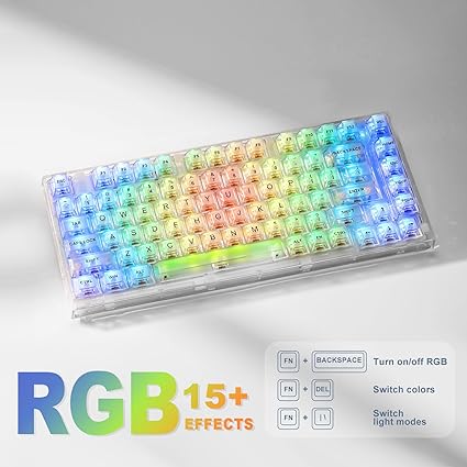 ・【ユニークな透明デザイン&技適認証取得】究極の透明性を追求したX75は、高品質の透明ポリカーボネートキーボードトップとバトムケース、透明キーキャップ、透明クリスタルスイッチを採用しています。キーキャップは高品質な透明PC素材で、UV印刷キーキャップを採用。ボディ全体が透明なので、RGBライティングがより華やかになり、暗い環境下でも視認性の高い環境を作り出します。技適認証を取得済み、電波法に基づき、日本の定める安全基準の検査に合格しました。