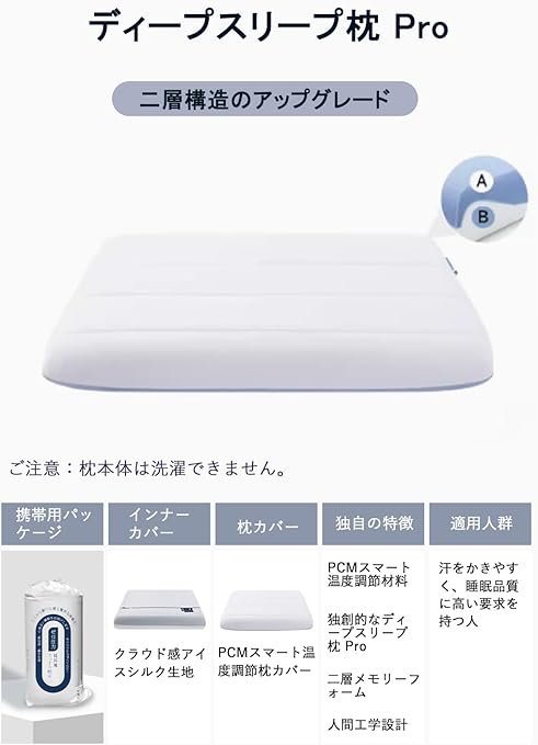 ・【1年中快適な枕】枕カバーは宇宙技術を採用し、PCM相変化材料を繊維に導入します。体温に反応して、暑いときには熱を吸収し、涼しいときには熱を放出して、快適な睡眠環境を提供します。