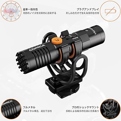 ・【高音質を実現】COMICA VM10 PROは単一指向性マイクであるため、音声を拾うエリアはマイクの前方に集中し、ターゲットの音声を的確に拾えます。また、オールメタル製で超抗干渉性に優れ、環境ノイズを効果的に遮蔽することができます。クリアな音声の録音が可能になります。