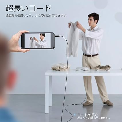 ・【3.5mの超長ケーブル】マイク本体のケーブル(1.5m)と延長コード(2m)を合わせて、ケーブルの総長は3.5mになります。この長さは使用者がより柔軟に移動できます。両手解放の状態で動きながら録音しても、音が歪まずしっかり集音でき、録画中もコードを露出や行動の不便などの心配は必要ありません。しかもコードには便利なマジックテープが装備されており、いつでもコードを清潔に保て、快適な録音や録画環境を提供いたします。