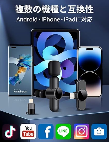 ・【iphone&androidデバイスと互換性】ピンマイク ワイヤレスはType-C ピンマイクとi-Phoneアダプタが付属して、ソフトウェアをインストールする必要がなく、Android&iphone複数の機種と互換性があるピンマイク。ご購入前に互換性のあるデバイスのリストを確認してください。商品の説明に記載以外のモデルはご購入前に弊社カスタマーサービスへお問い合わせください。「※アイフォーン携帯電話を使用際にはスクリーンショットを点灯させたままペアリングしてください。※OTGとUSB Audio機能の無いAndroidスマホ非対応、及び接続する前にOTG機能を有効にする必要があります。」