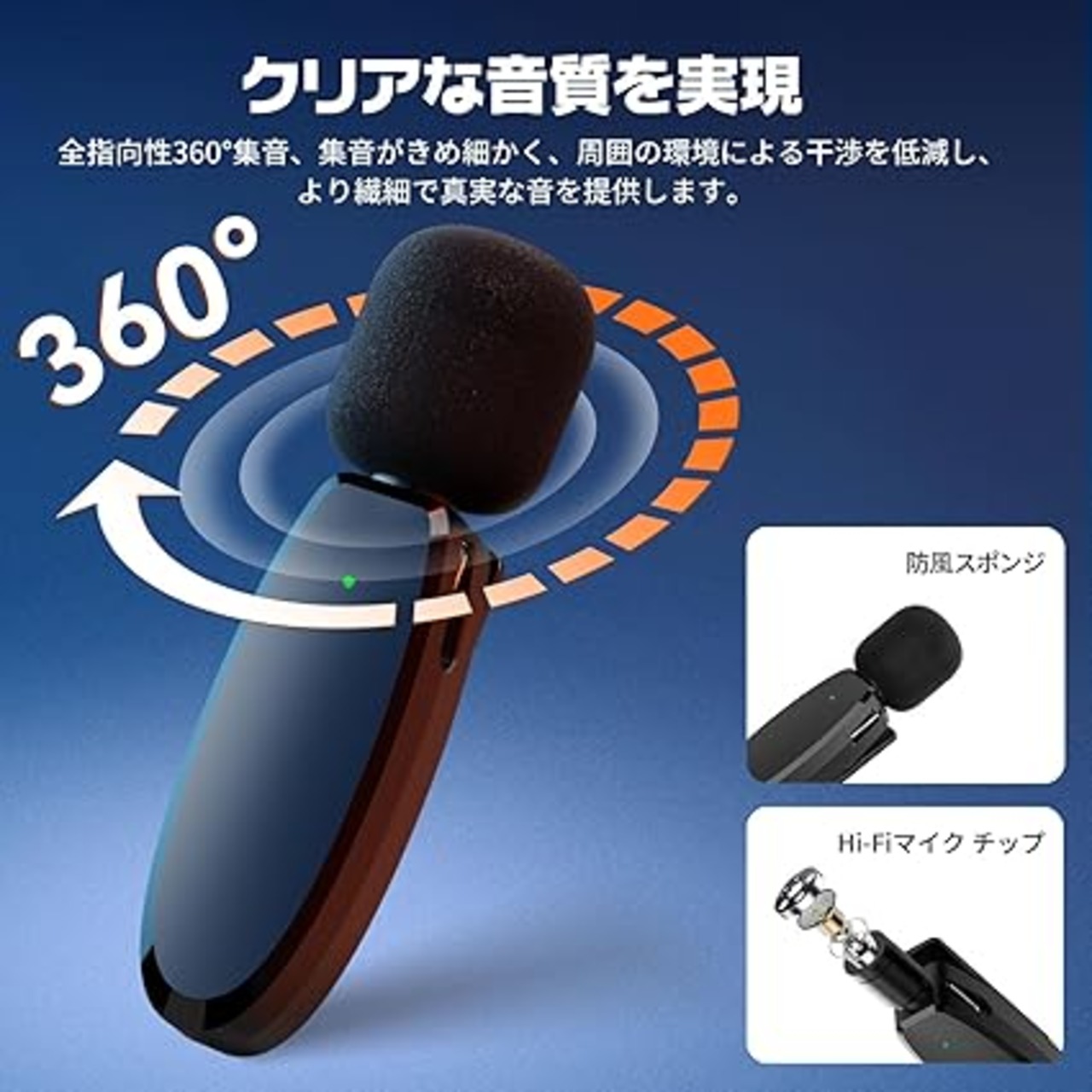 ・【遠距離転送& 360°全指向性】ワイヤレスラベリアマイクは2.4GHzデジタル伝送技術採用をしており、信号安定性が高く、音声遅延が短く、50メートルの遠距離でも音声をクリアに安定して収録できます。屋外ライブストリーミングや録音に最適です。全指向性360°集音の高感度音声ピックアップサポートします。集音がきめ細かく、周囲の環境による干渉を低減し、使用者のみの真実な音を録音します。