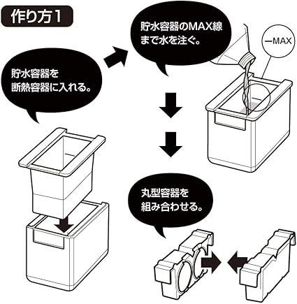 ・素材:丸型容器/熱火可塑性エラストマー、貯水容器/ポロプロピレン、断熱容器/ポリプロピレン