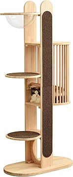 ・【爪とぎ支柱・360°透明宇宙船をご用意】長さ約145cmの爪とぎ支柱が設計されるので、猫ちゃんの運動不足を解消して、思う存分にガリガリ、元気に長生き!正面、背面があるので、 多頭飼いにもオススメ!また、透明度の高いアクリル製ボウル型宇宙船、360°から愛猫が様々な遊び姿が見えます。宇宙船はゆるやかな曲線でネコちゃんの体にフィットし、猫ちゃんの体をリラックスできます。こんな猫ちゃんを見たら、悩みが癒されると信じています!