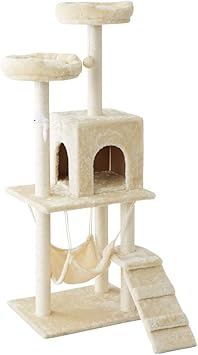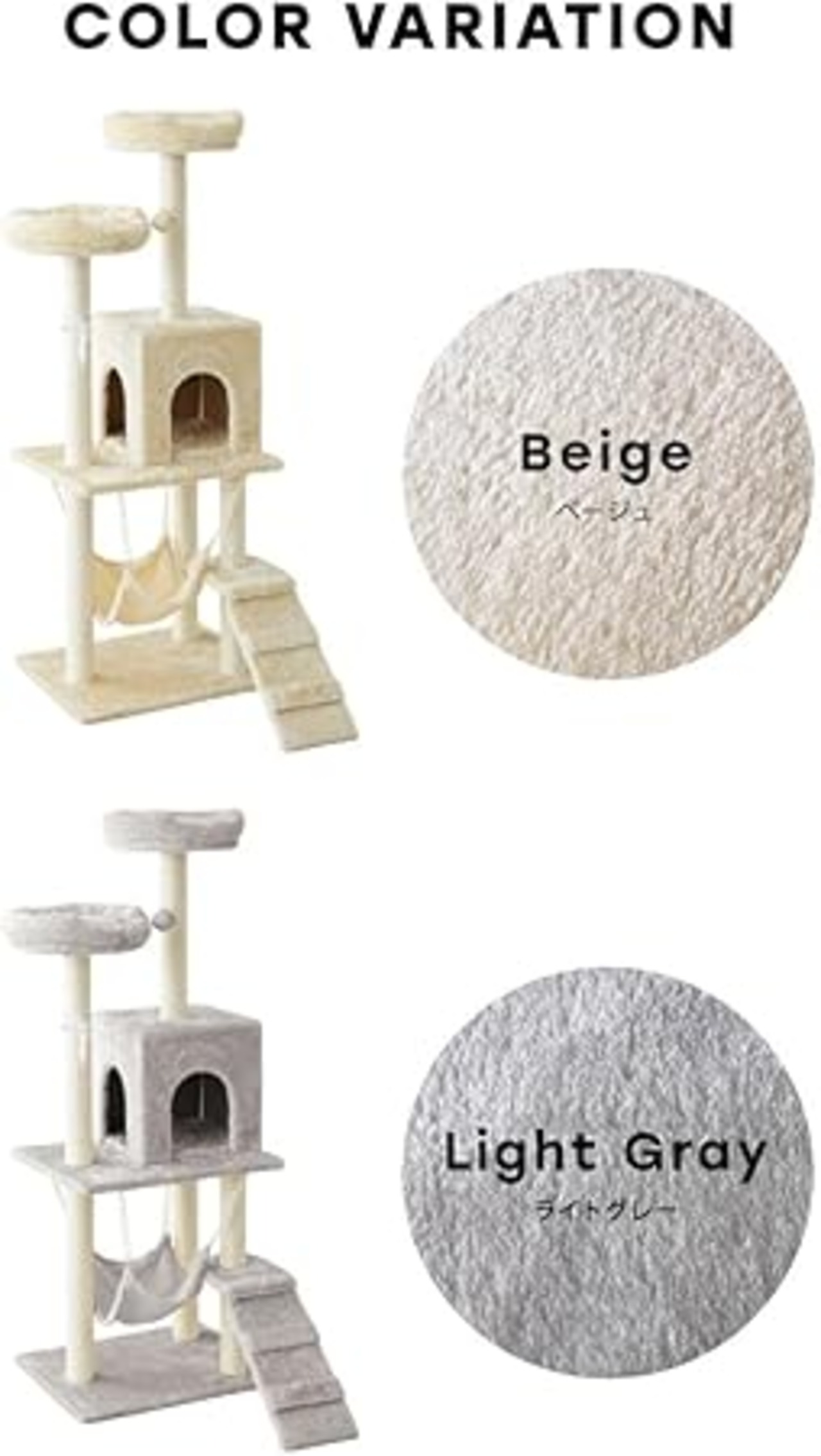 リコメン堂 キャットタワー 据え置き 爪とぎ 階段付き ハンモック 隠れ家 多頭飼い 高さ130cm ベージュ
