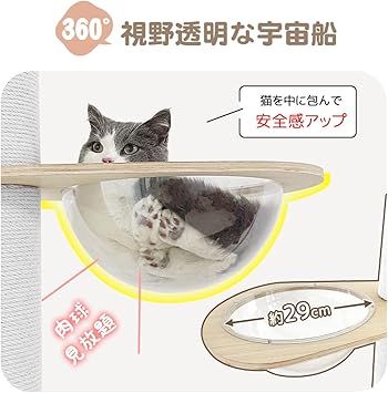 「日本メーカー」RAKU 木登りタワー 宇宙船ハンモック付き シングル キャットタワー 突っ張り 猫タワー 省スペース 高さ183〜208c