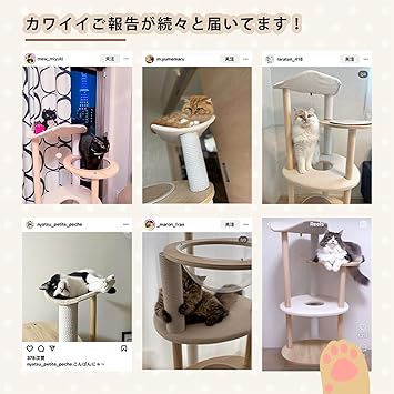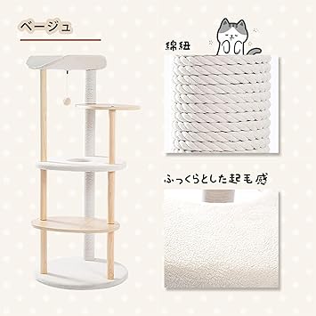 ・【高いカーブベッド】独特な曲線型カーブベッドは猫ちゃんに大歓迎!きっとお昼寝のいい場所になれますよ〜ピンクベージュのキャットタワーにだけ高いカーブベッドのマットが付属します!