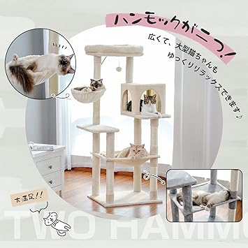 PETEPELA(ぺテぺラ) キャットタワー 大型猫 コンパクト 広いハンモック 猫タワー スリム 据え置き 省スペース 登りやすい 見晴台