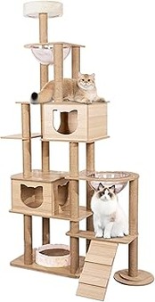 ・???【6階建てのキャットタワー:リラックス出来る台座・隠れ場所】台座が多く、ペットはさまざまな高さの風景を楽しむことができ、複数のペットを一緒に飼うこともできます。 猫の頭の形をくりぬいた部屋は、猫に安全感を与えると同時に、場所を取らないので、家の空間を圧迫することなく置き事ができます。