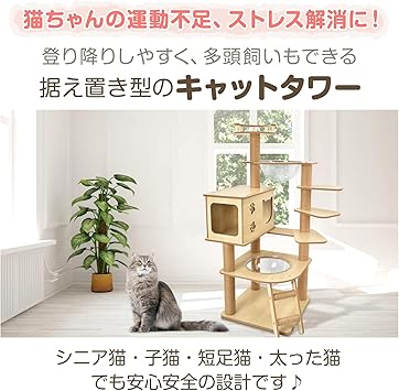 Kaitou キャット タワー 木製 据え置き 爪とぎ 展望台 猫 ツリー ハウス 部屋 隠れ家 ペット グッズ (タイプ5)