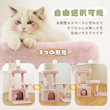 ・【猫が大好きな要素満載】高台?ボンボンおもちゃ?爪とぎ棒?猫ハウスなどが充実!楽しく遊べるボールと、爪とぎができるポールが付いているため機能面もばっちり。猫ちゃんの好みに合わせて多彩な要素を用意しています。子猫も上り下りしやすいジャンプしたり遊んだりと自由自在に楽しめます。運動不足解消に最適。