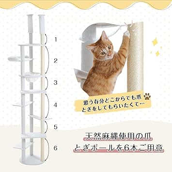 ・【天然麻縄使用の爪とぎポールを6本ご用意】爪とぎはあなたの愛猫をたくさんのストレスから守っていることを知っていましたか?体と心の健康を維持するためにも爪とぎはとても大切です。