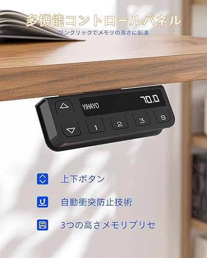 YIHAYO 昇降デスク 幅120cm 奥行き60cm 高さ70-118cm 電動 スタンディングデスク 昇降式デスク 高さメモリー機能 上
