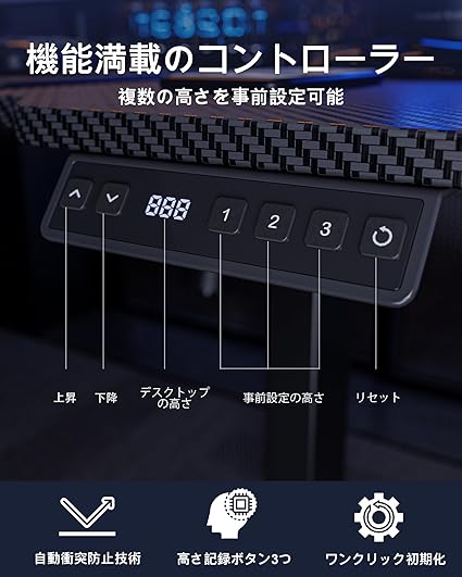 ・【障害物検知機能】: 昇降時に障害物を検知するセンサーが内蔵されており、異物にぶつかったら自動的に操作を停止してもとの位置に戻ります。