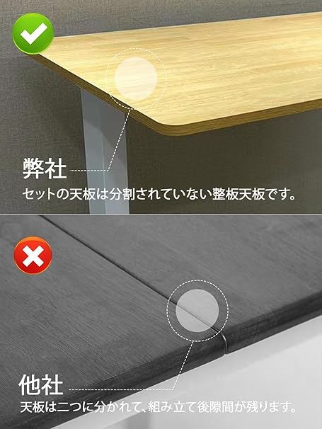 ・1枚式天板:天板が1枚物で、分割天板のものと比べて隙間や段差などが無い、清潔にも便利、また、より強固で安定させ、より重い負荷に耐えることができる。角をなくした柔らかなデザインは、お子様のいるご家庭でも使いやすいです。