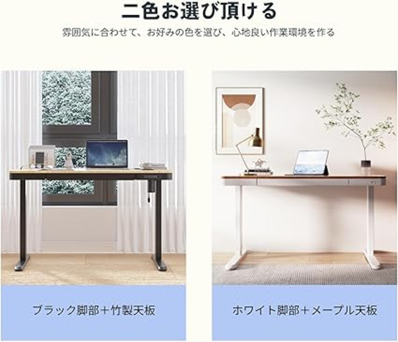 ・メモリー機能:よく使用する高さを記録して一押しだけで記録した高さに戻ります。お好みの高さを4パターン登録可能です。USB充電:Type-A(最大出力27W)とType-C(最大出力45W)のUSB端子付き。※デスクの昇降中はUSB充電機能が一時停止します。