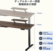 ・【無段階高さ調節】電動式で無段階昇降でき、高さは72~121cmの間で様々なシーンに合わせて自由に調節できます。80kg超高耐荷重で、安定性は抜群です。モーター駆動音はすべて50dB以下で、会議中や就寝時にも妨げになりません。昇降範囲:72-121cm;昇降速度:25mm/s