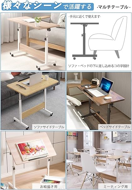 KUKER 昇降デスク 折りたたみデスク サイドテーブル 高さ調節 キャスター付き 省スペース スタンディングデスク ベッドテーブル パソコ