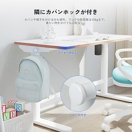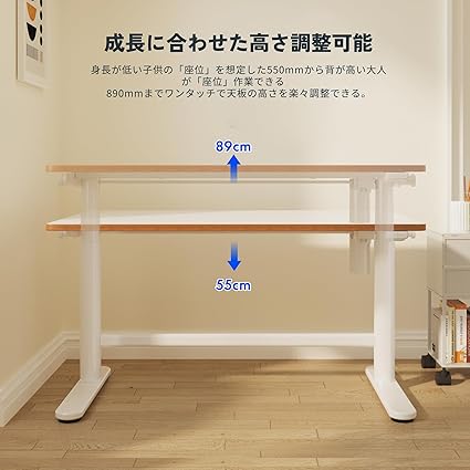・電動式昇降デスク:タッチするだけで好きな高さに昇降させ、姿勢を変換しながら勉強しましょう。