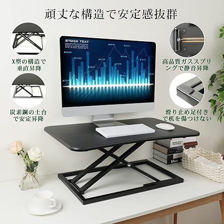 ・【頑丈な構造で安定感抜群】SHUWEI昇降式オフィスワークテーブルは高品質ガスシリンダー・X型の構造・炭素鋼の土台を採用することで、静音・垂直・安定昇降ができます。また、机の上に設置された多機能昇降式デスクとして、その下の机を傷つけないように、滑り止め足も付いています。