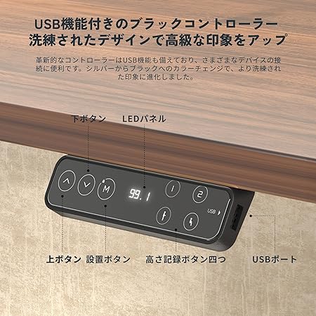 ・【USB機能付きのブラックコントローラー】シルバーからブラックへのカラーチェンジで、より洗練された印象に進化しました。革新的なコントローラーはUSB機能も備えており、さまざまなデバイスの接続に便利です。メモリ機能付きで、四つの高さ設定を予めセットでき、身長に合わせて高さを調整して、家族全員で使用可能です。また、ロック機能搭載で、好奇心旺盛な子供たちを守ることができます。
