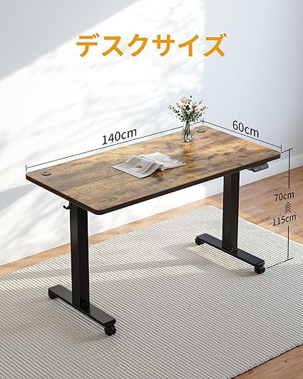 CubiCubi 電動 昇降デスク 幅140cm 奥行60cm 昇降式デスク スタンディングデスク 人間工学 上下昇降デスク ミーティングテ