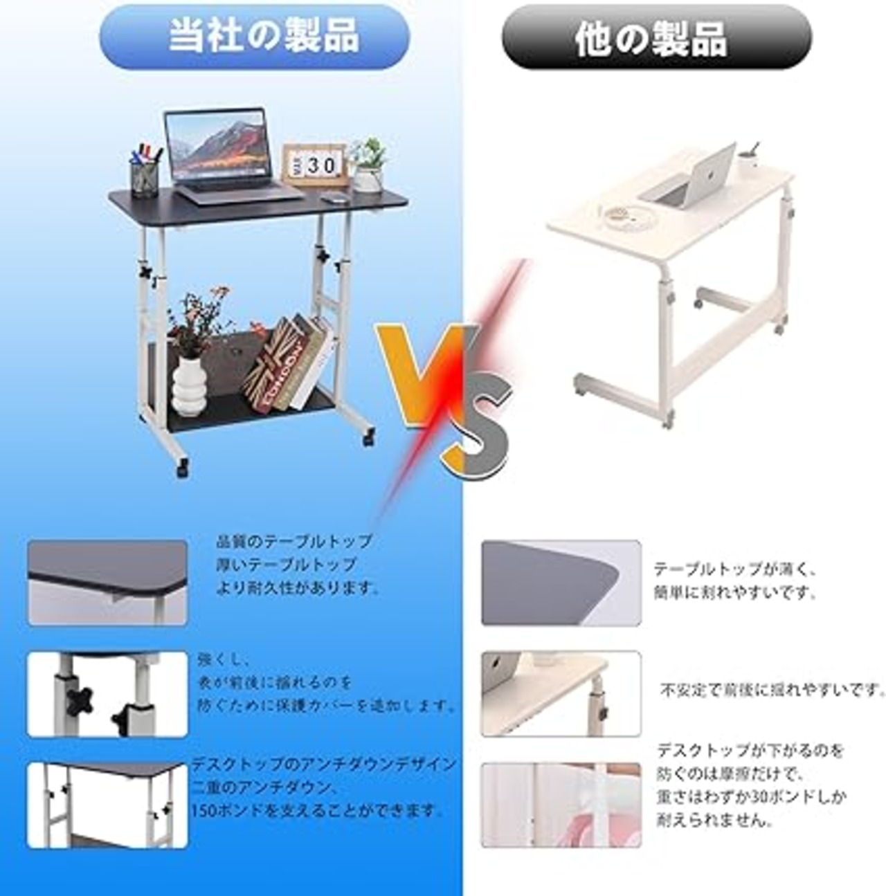 デスク 机 大容量収納空間 高さ60~90cm キャスター付き 昇降式テーブル ベッドサイドテーブル デスク机 パソ コンデスク てーぶる