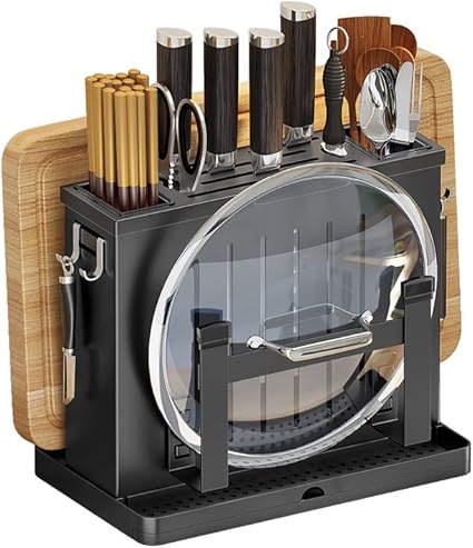 ・【コンパクトで収納簡単】多機能統合収納、スペースの有効利用、統合された包丁、まな板、箸立て、鍋蓋ホルダー、各種ナイフ、はさみ、箸、スプーン、フォーク、スプーン、まな板、鍋蓋、調理器具。 コンパクトかつ大容量でキッチンのスペースを有効活用できます。