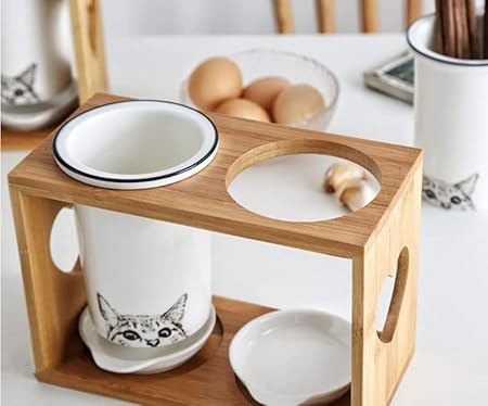 ・1.【おしゃれな北欧風の箸立て】北欧風のデザインで木製部と陶器容器が落ち着いた雰囲気を引き立てるおしゃれな箸立てです。キッチンの水切りとしても食卓テーブルの箸立てとしてもご使用頂けます。