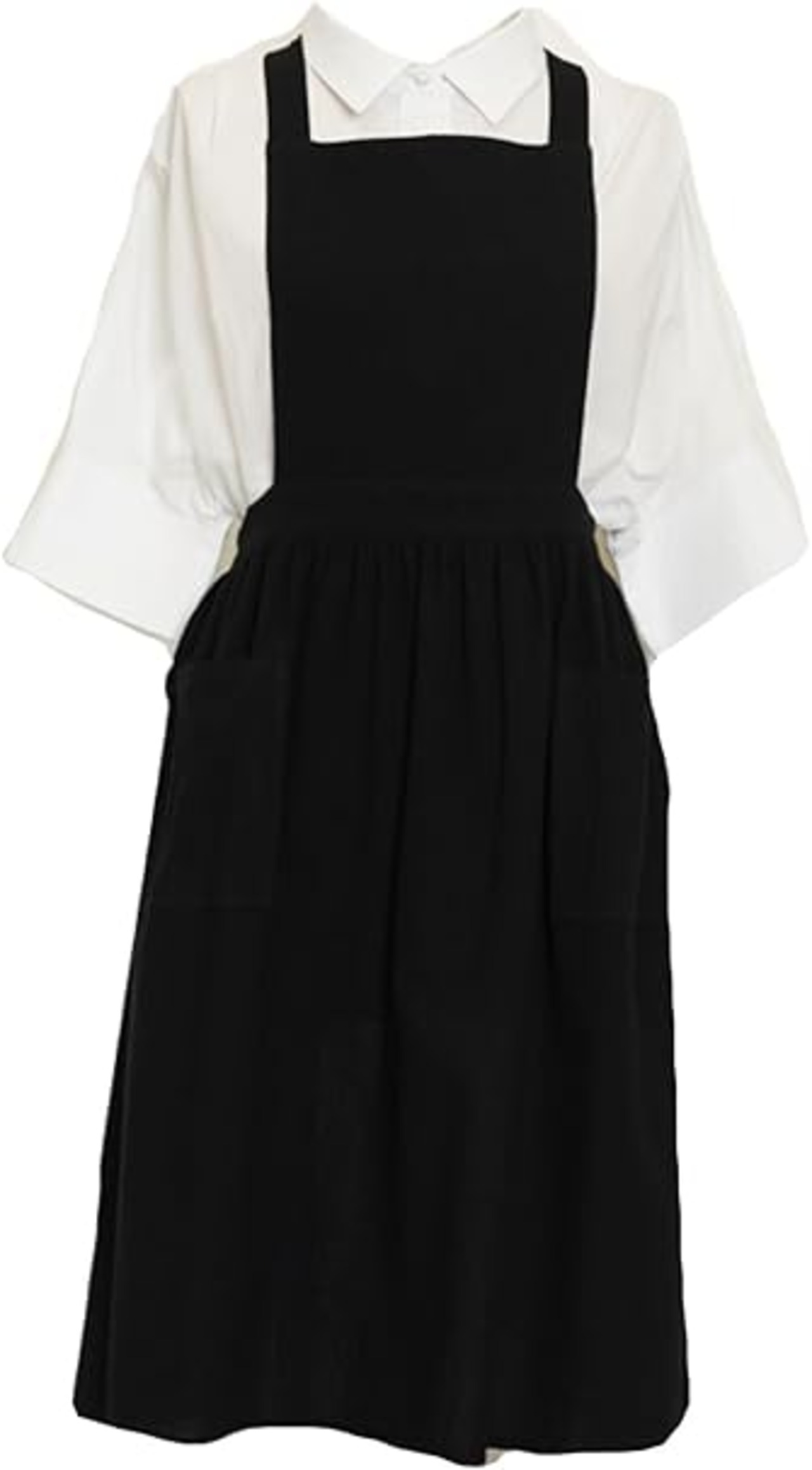 ・キッチン、ガーデニング、ワーキングなど普段使いにも、カフェ、保育園、学校、雑貨屋での作業の時など幅広く使えます。ワンピースのようなデザインで、女性らしいシルエットがポイント♪ポケットが2つついているのも便利です。